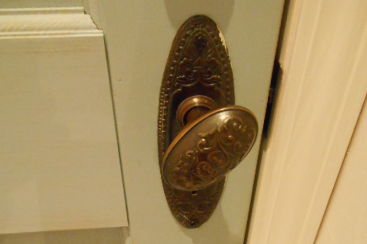 ![]() ▲ トイレの扉はオリジナルで仕上げました。ドアは19,800円、アンティークノブは25ドルでした。 |